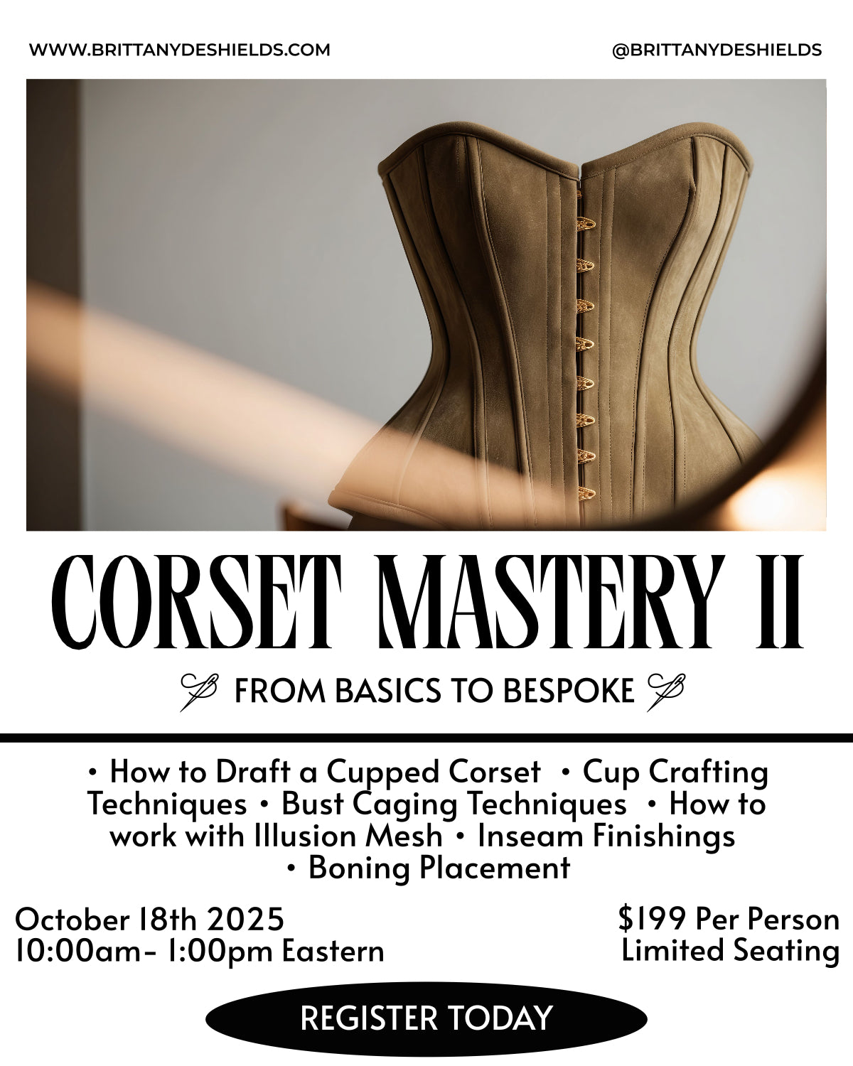 Once you join the Mastery Course, you will be sent a link to download an Overview of the Course, and Tools/Supplies Needed for the course. There will also be a link to download our Corset Pattern in a PDF Form.